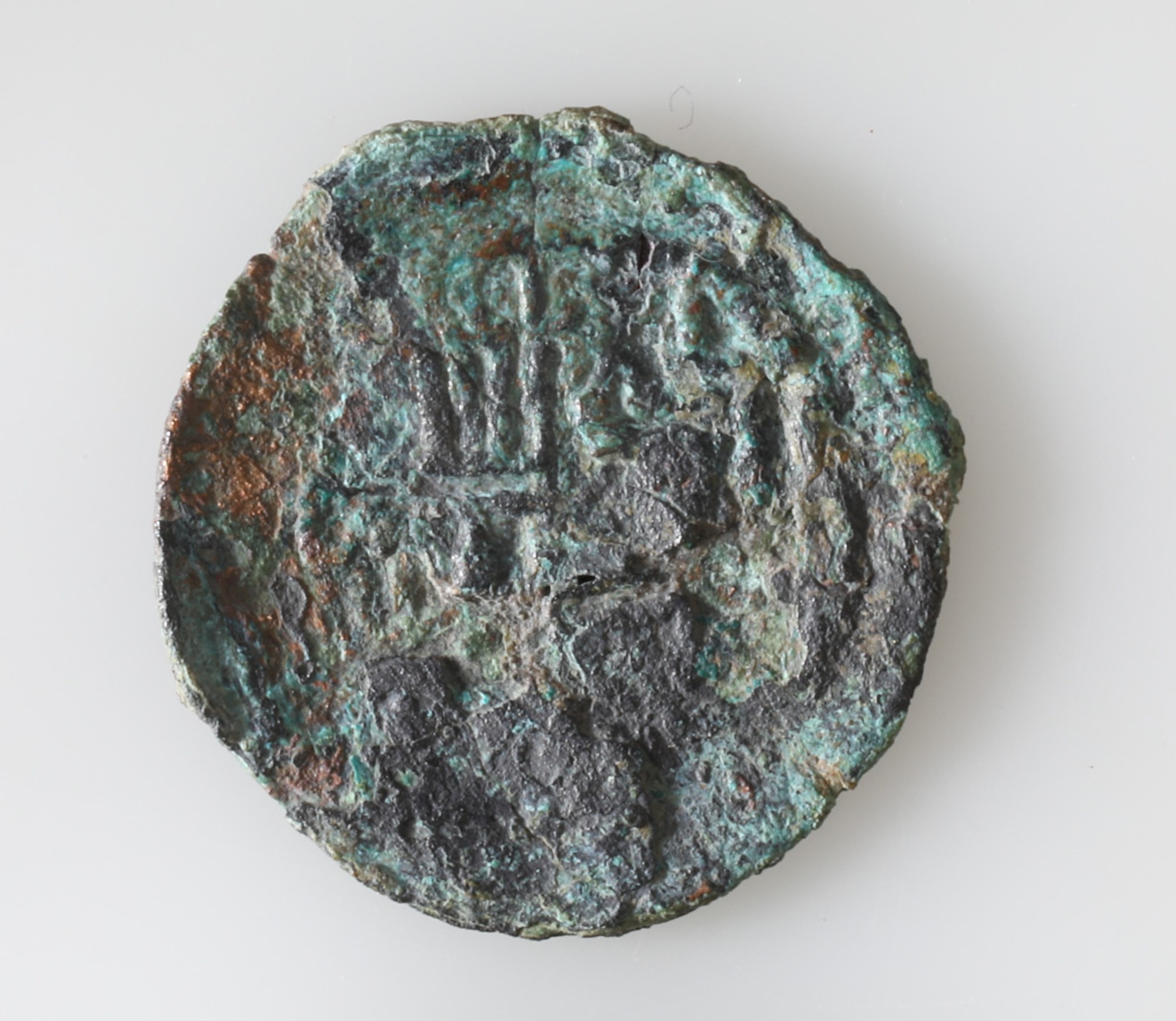 Monnaie. Alliage cuivreux. 1160 - 1170. Châtenois. Fouille d’Archéologie Alsace.- Prêt du CCE Alsace. Photographie : Isabelle Déchanez-Clerc © Archéologie Alsace.