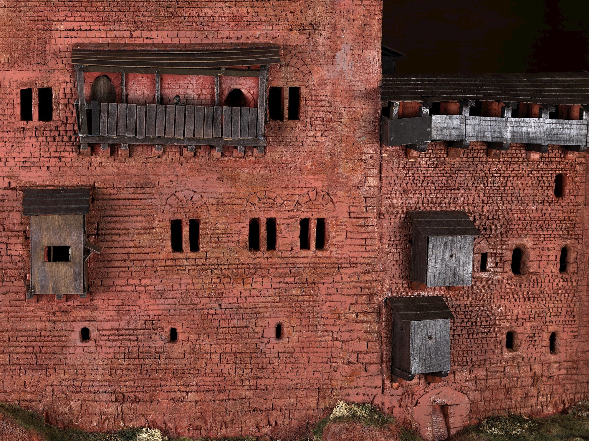 Maquette du château de Rathsamhausen, échelle 1/50. Réalisation : Etienne Fritsch, pour le compte de l’association Les amis des châteaux d’Ottrott (AMCHOTT), 2019.