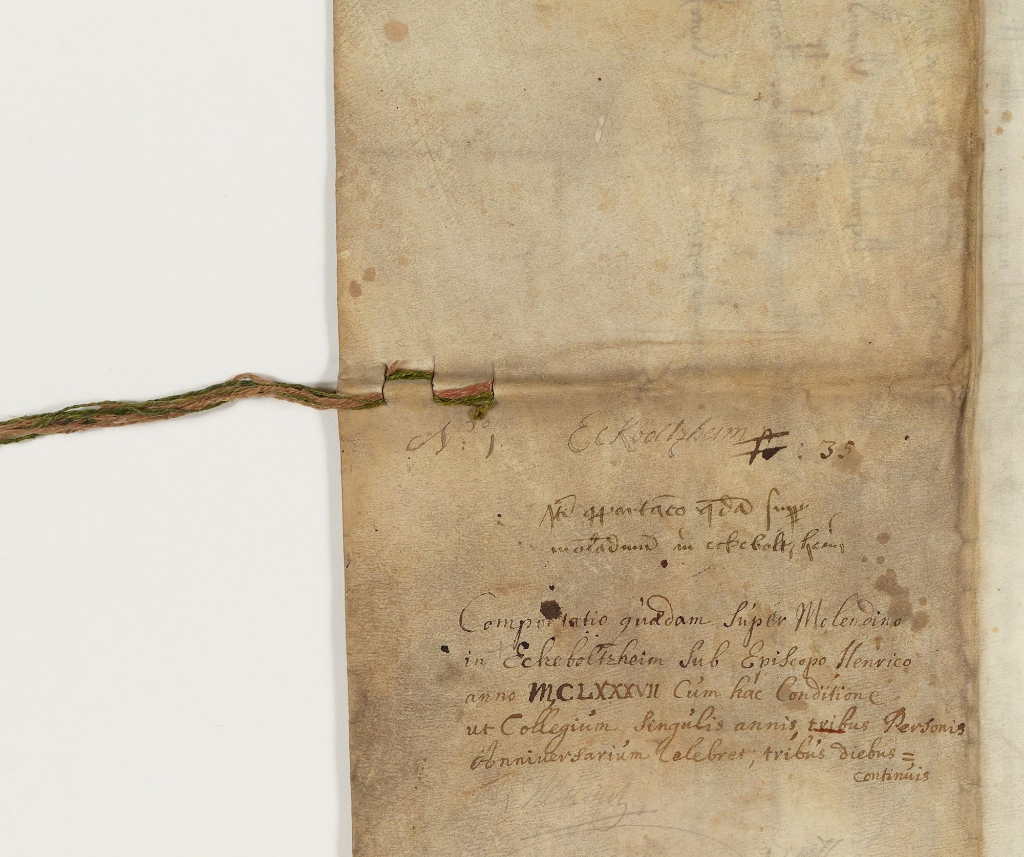 Le médecin Humbert, bourgeois de Strasbourg, rachète pour 8 talents le cens qu'il devait au chapitre de Saint-Pierre-le-Jeune de Strasbourg pour une maison et un moulin situés à Illkirch ; le chapitre fera célébrer chaque année une messe pendant trois jours pour Humbert, sa femme et son fils, chanoine du chapitre, après leur mort, 1187 – AD67, G 4226/1.